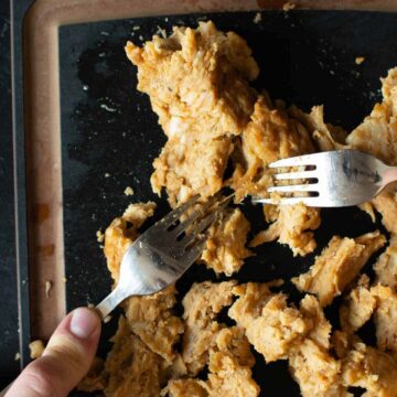 Step 10: Shred it using two forks and use immediately. Store the chunks in an airtight container in the fridge for up to 3-4 days or in the freezer for up to 2-3 months.